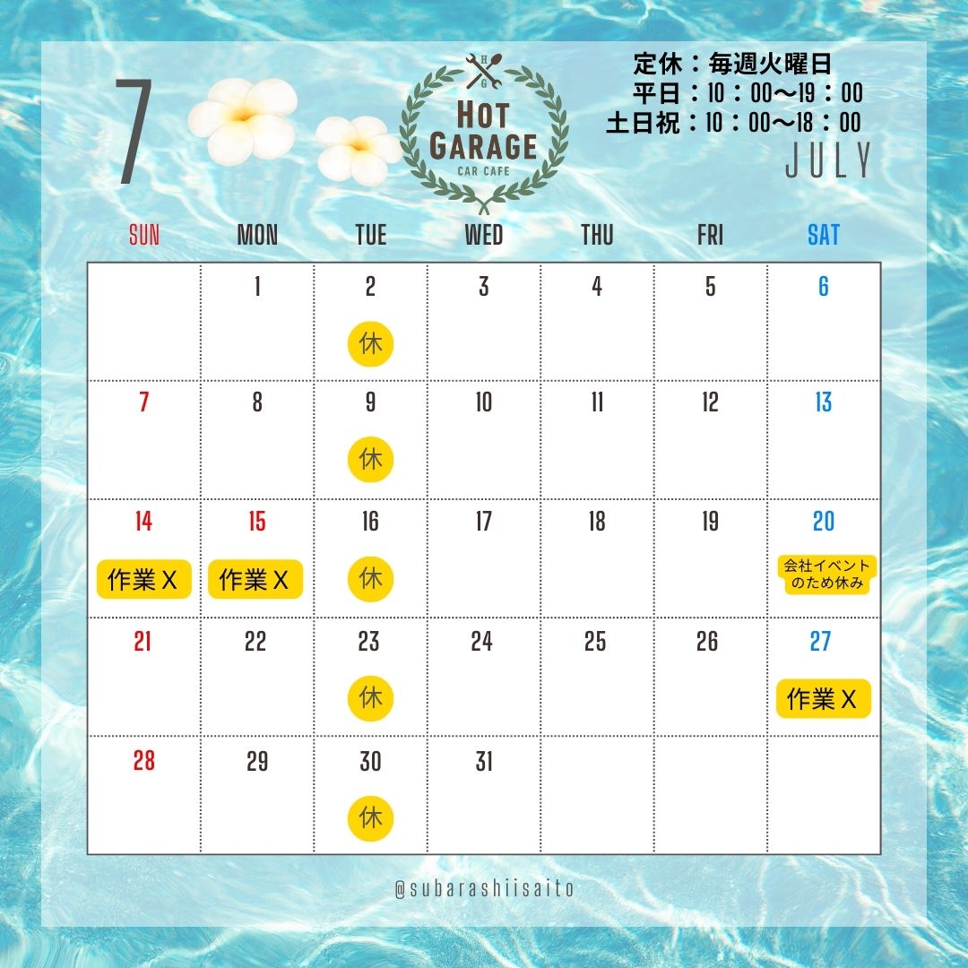 お世話になっております。 7月より当面の間、定休日・営業時間の変更をさせていただきます。 皆さまにはご不便をおかけしますが、どうぞよろしくお願い致します。
